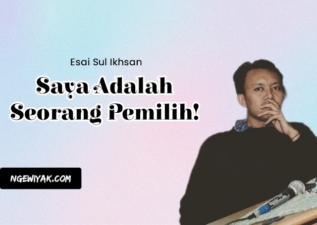 Menjadi pemilih artinya mempertahankan integritas individu di atas “hak yang sama” yang dicita-citakan sistem ini. Tanpa menerima iming-iming apa-apa, bergantung pada sang calon, menjadi fanatik yang membela, menjilat, mengampanyekan habis-habisan si calon akan memberikan keleluasaan mereka untuk memanipulasi hak suara kita yang pada gilirannya menyeret orang lain untuk ikut bersama kita. Bahkan, setelah si calon terpilih kita merasa segan untuk mengkritik dan mengontrol kebijakan mereka karena kita telah masuk dalam pusaran: saya pendukung mereka.